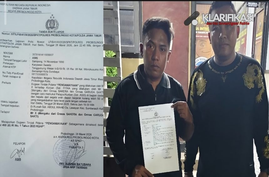 Klarifikasi.org | Probolinggo — Kebebasan pers kembali diinjak. Seorang wartawan diduga menjadi korban penganiayaan oleh oknum ormas saat menjalankan tugas jurnalistik mendampingi korban penipuan kendaraan.